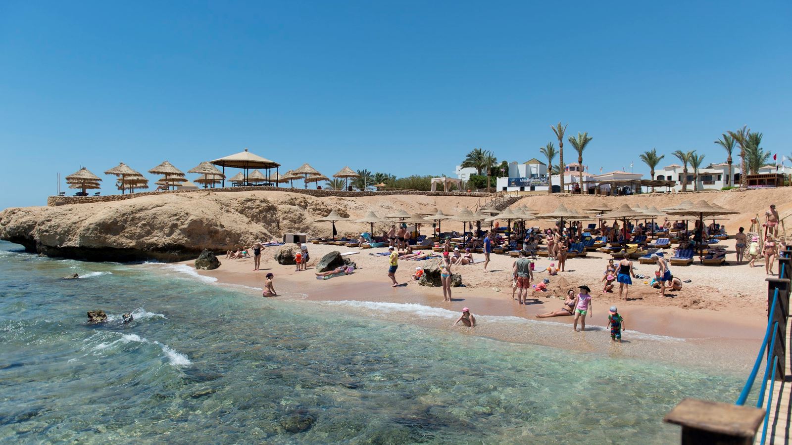 Територія Територія зелена. Є тенісний корт, футбольне поле. Днем можна користуватися безкоштовно, а от увечері платите тільки за світло. Вартість 10 дол на годину. Як і в багатьох готелях Єгипту. На території розташувалося 2 бари. 1 бар, який працює з 10:00 і до заходу сонця біля підігріваються басейнів. І 2 бар, який біля маленького басейну не далеко від ліфта на пляж. Бассейн. У готелі до 7 басейнів. 2 басейни з підігрівом. 1 басейн дорослий і другий басейн дитячий басейн. Вони розташовані в корпусах готелю. Є так само аквапарк.